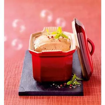 3/4-quart pate terrine and press made of stoneware with a non-porous enamel finish