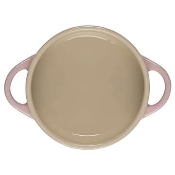Show more Introducing the Le Creuset L'Amour Collection Stoneware Mini Round Cocotte, a delightful 8oz cooking essential in Chiffon Pink adorned with a charming heart applique. This stunning piece is not just a feast for the eyes but also a testament to durability and efficiency in the kitchen. Crafted from premium stoneware, this mini cocotte ensures exceptional heat distribution, allowing for uniform browning and evenly cooked dishes, all while eliminating hot spots that can ruin your culinary creations. It’s perfect for both cooking and elegant serving, making every meal special.