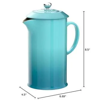 Show more If you’re in search of the perfect gift for a coffee lover, look no further than the stunning Le Creuset Stoneware Cafetière French Press. This beautifully crafted 1 Litre French press is made from robust stoneware that promises not only durability but also remarkable heat retention. Its elegant design, adorned in an exquisite Teal color, makes it a striking addition to any kitchen.