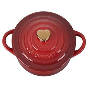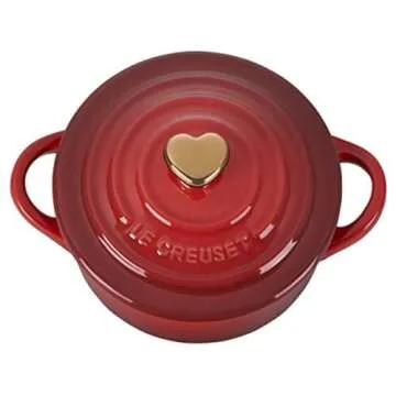 Le Creuset Stoneware Mini Round Cocotte, 8oz., Cerise with Gold Heart Knob