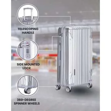 Le Maurice & Co Hardside Expandable Luggage - Set of 3 Hardshell Lightweight Rolling Suitcase, Carbon Silver Alumax Style - Carry On Luggage Bag with 8 Spinner Wheels & TSA Lock (28", 24", 20")