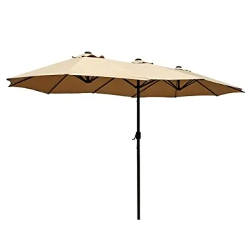 Le Papillon 15 ft Market Outdoor Umbrella Double-Sided Aluminum Table Patio Umbrella with Crank, Beige