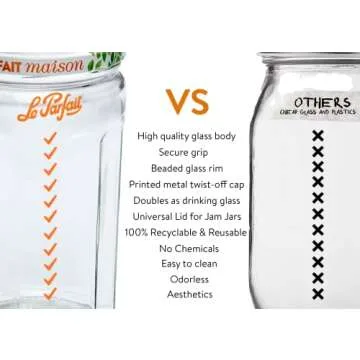 Unlike other standard glass jars on the market, the Le Parfait Jam Jars offer a unique blend of sophistication and durability. Where others may employ flimsy materials leading to breakage and seal failures, our jars stand out with their robust faceted design and premium metal lids. This thoughtful construction ensures that your contents remain fresh and secure, giving them a notable edge over subpar options.