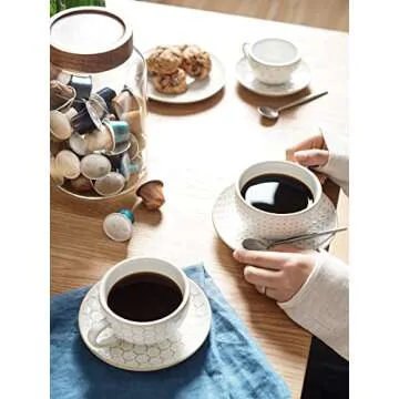 LE TAUCI 8 oz Cappuccino Cups with Saucers, Ceramic Large Coffee Cup for Au Lait, Double shot, Latte, Cafe Mocha, Tea - Set of 4, Arctic white