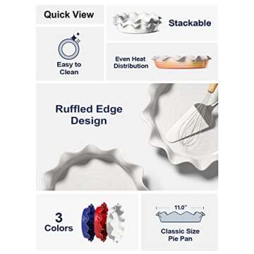 Health-conscious bakers will appreciate that this ceramic pie dish elevates pie baking from mere routine to a culinary art. It boasts even heat distribution for perfect baking results and is crafted from durable, high-grade materials that withstand everyday use. The highly resistant glaze ensures that food odors and flavors are not absorbed, keeping every pie fresh and delicious.