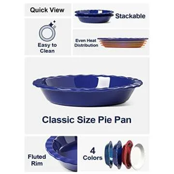 LE TAUCI Ceramic Pie Pans for Baking, 9 Inches Pie Plate for Apple Pie, Pecan Pie, 36 Ounce Deep Dish Pie Pan, Set of 2, Blue