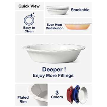 LE TAUCI Ceramic Pie Pans for Baking – Set of 2, 9 inch Deep Dish