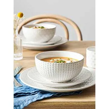 LE TAUCI Dinnerware Sets 12 PCS, Ceramic Plates and Bowls Set, Suit For Housewarming (10" Dinner Plate + 8" Salad Dish + 26 oz Cereal Bowl) x 4, Oven safe - Arctic White