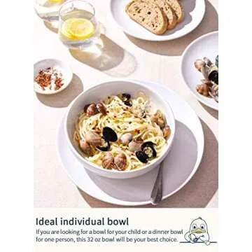 Show moreIntroducing the LE TAUCI 32-ounce shallow bowls, an exquisite blend of style and functionality that brings elegance to any dining experience. Crafted from high-quality, heat-safe ceramic and grade A porcelain, these bowls are not just about looks; they offer exceptional durability and can endure temperatures up to 482°F. Whether you're serving pasta, soup, dessert, or even beans, their unique shape allows these bowls to perform wonderfully. The wide mouth design enables you to easily spoon out every delicious morsel, making meal times enjoyable and hassle-free.