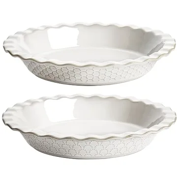 Show moreIntroducing the exquisite fluted stoneware pie dish from Le Tauci, a perfect blend of elegance and functionality for the discerning baker. This stunning 9-inch pie dish, with a height of 1.7 inches, is tailor-made for baking everything from homemade fruit pies to luscious pot pies. Compatible with standard 9-inch pie crusts, this dish saves you time and effort in the kitchen. With its charming wave edge and embossed detailing, it not only enhances aesthetic appeal but also adds a unique tactile experience to your baking.