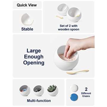 LE TAUCI Salt Pig, 12 Oz Ceramic Salt Cellar Set with Wooden Spoons, 4.8 Inch Salt Crock, Fit a Large hand, Wide-Mouth Salt Box, Salt and Pepper Shaker, Set of 2, White
