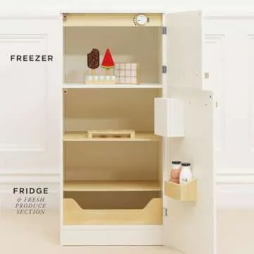 Le Toy Van – Wooden Stand Alone Fridge Freezer Set | Grand Free Standing Refrigerator & Freezer with Accessories Pretend Play Set – Suitable for 36+ Months