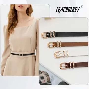Show moreElevate your style and accentuate your outfits with this exquisite set of women's skinny leather belts. Crafted from premium quality faux leather, these belts are designed to withstand the rigors of daily life while retaining their elegance. Their slender design offers a comfortable fit that seamlessly integrates into any wardrobe without adding bulk.