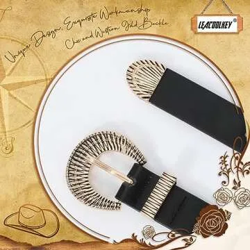 Show moreIntroducing the LEACOOLKEY Western Leather Belt, an exquisite blend of vintage charm and modern functionality designed exclusively for women. Crafted from premium quality leather, this belt not only boasts a smooth texture and soft touch for maximum comfort but also features a stunning carved metal buckle that encapsulates the essence of Western style. Whether dressing up for a special occasion or adding a casual touch to your outfit, this versatile belt is the perfect accessory for enhancing your wardrobe.