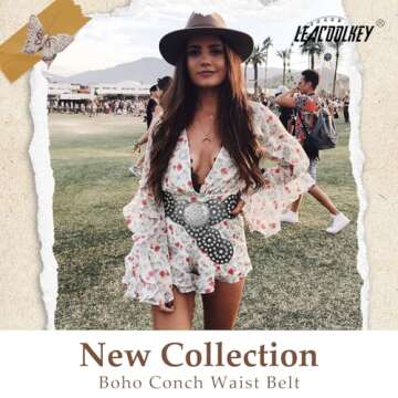 LEACOOLKEY Women Western Leather Belt Boho Disc Conch Waist Belt for Dress Jeans