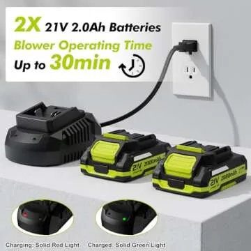 Leaf Blower Cordless 21V Electric Cordless Leaf Blower with 2 Batteries and Charger, 2 Speed Mode, 2.0Ah Lightweight Battery Powered Leaf Blowers for Lawn Care, Patio, Blowing Leaves