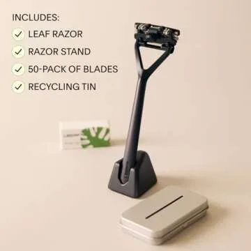 The Leaf Razor set includes everything necessary for the ultimate shaving experience: 1x Leaf Razor, 1x Matching Leaf Razor Stand, 1x 50-Pack of Single-Edge Razor Blades, and 1x Blade Recycling Tin. Perfectly suitable for both head and body shaving, this kit is poised to revolutionize your grooming routine.