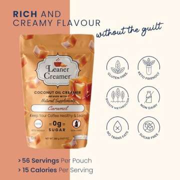 Leaner Creamer Natural Powdered Coconut Creamer for Coffee - Coconut Oil Non-Dairy Creamer to Naturally Cream & Sweeten Coffee for Smoothies, Keto, Gluten-Free, Sugar-Free - Caramel - 280g
