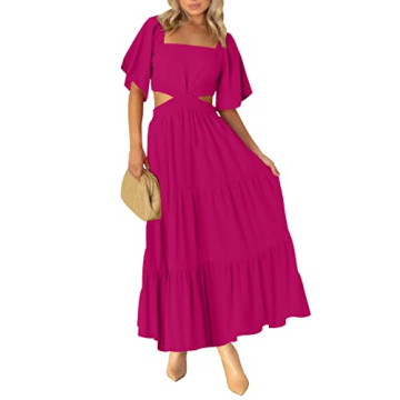 LEANI Women’s Short Sleeve Cutout Maxi Dress - Flattering & Versatile in Rose
