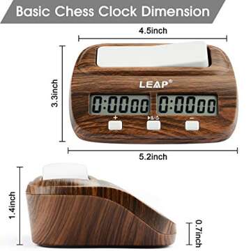 LEAP Chess Clock with Countdown Alarm Bonus and Delay Functions for Chess and 2-Player Board Games Classic Wood Grain Version