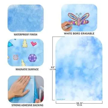 Learn & Grow Magnetic Tile Wall Decal, Magnetic Multifunctional 31"x43" Wall Decal, Self Adhesive Whiteboard Board Magnetic Wall Board Sticker Blue