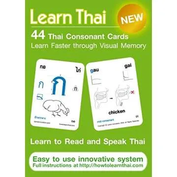 Show moreDiscover the beauty of the Thai language with the "Learn Thai: Thai Consonants - 44 Flash Cards"! These expertly designed flashcards are perfect for beginners and language enthusiasts alike, providing an engaging way to learn and master the Thai consonants. Each card features high-quality illustrations, phonetic pronunciations, and example words, ensuring that you not only recognize each consonant but also understand its practical use in everyday language.