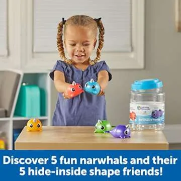 Show more Discover the enchanting world of learning with the Snap-n-Learn Narwhals & Friends by Learning Resources! This innovative educational toy set consists of 15 vibrant pieces designed to engage toddlers aged 18 months and older. Each two-piece narwhal is not just a toy; it’s a hands-on tool for developing fine motor skills and cognitive development. Little ones can easily pop open and snap together their narwhals, while discovering delightful surprise shape friends hidden inside. These interactions are not only fun but also immensely beneficial in helping children learn colors and shapes through play.