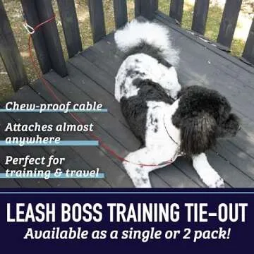 Leash Boss Dog Tie Out Cable for Large Dogs - 5 Ft Heavy Duty Tether for Outside Dog Runner - Durable, Chew-Proof, Dog Lead for Yard, Camping, and Training