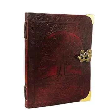 Leather Celtic Tree of Life Book of Shadows Blank Spell Book Wicca (Brown Large)