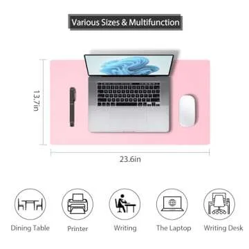 Show moreTransform your workspace with the sophisticated Leather Desk Pad Protector, a superior addition that revitalizes your office aesthetics while providing utmost protection. Crafted from high-quality PU leather, this desk mat not only safeguards against scratches, stains, and spills but also adds a touch of modern elegance to your home or professional environment. With its ample size of 13.7"x23.6", it comfortably accommodates your laptop, keyboard, and mouse, ensuring your productivity remains uninterrupted. Whether you're engaged in intense work sessions or casual browsing, this desk mat enhances your experience with its stylish design and functional elements.