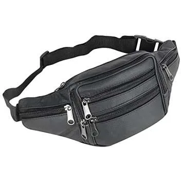 Leather Fanny Pack Travel Waist Bag 7 Pockets Waist Pack.Suitable for Outdoor Mountaineering Travel Camping Cycling Running etc FANNING511 Fanny pack (Black)