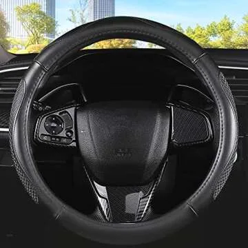 Leather Steering Wheel Cover - Car Steering Wheel Cover 15 inch Universal Fit Microfiber Steering Wheel Cover Anti-Slip, Soft, Breathable, Full Surround Car Wheel Cover