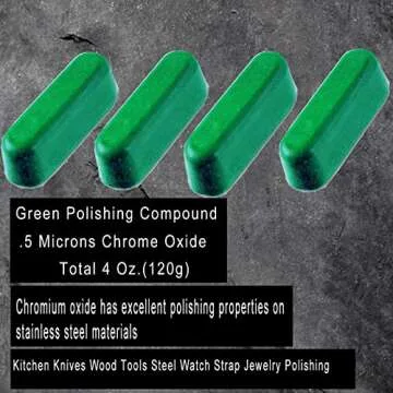 The green polishing compound has a grit size of 0.5 microns, which allows for fine polishing and a superior finish.