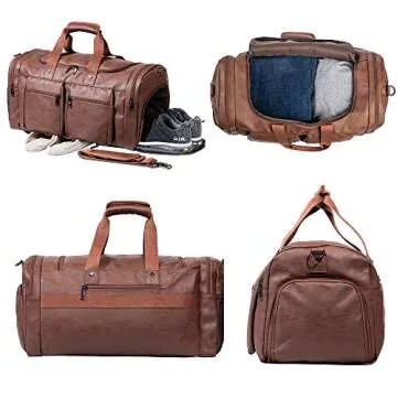 Show more Introducing the Leather Travel Bag with Shoe Pouch, a versatile weekender and overnight bag designed for the modern traveler who values both style and functionality. Crafted from high-quality waterproof super fiber PU leather, this duffel bag is not only durable but also exquisitely stylish, available in a rich brown that complements any outfit. With dimensions of 22" x 12" x 10.5", and a spacious capacity of 52 liters, it is perfect for 3-4 days of travel, whether for business or leisure. Its unisex design makes it equally appealing to both men and women, ensuring you travel in style.