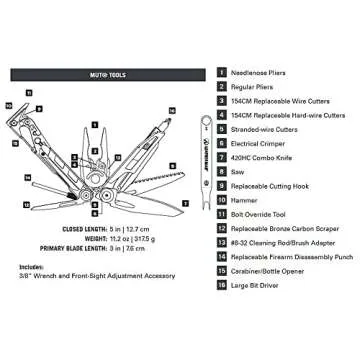 LEATHERMAN, MUT Multitool with Premium Replaceable Wire Cutters and Firearm Tools, Stainless Steel with MOLLE Brown Sheath