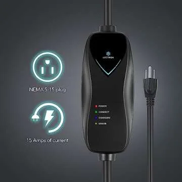 Show more Introducing the Lectron Level 1 EV Charger, your go-to solution for cost-effective and reliable electric vehicle charging. Designed to provide a seamless charging experience, this charger connects to standard 110V outlets, ensuring you have quick access to power whether at home or on the road. With 15 amps of power – delivering 1.65 kW – you can expect to gain an impressive 40-50 miles of charge overnight, making it the ideal partner for daily commuters and occasional EV users alike.