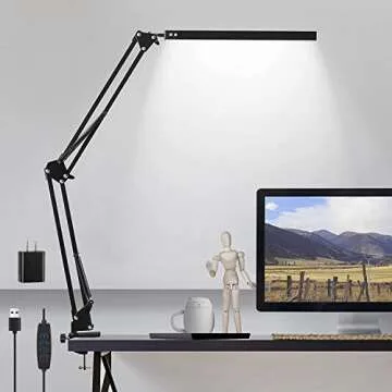Show moreIlluminate your workspace with the LED Desk Lamp with Clamp, a paramount choice for both efficiency and style! This architect-modern swing arm desk light not only enhances visibility but also features an eye-caring design tailored to reduce eye strain, making it perfect for long hours of work, study, or creative pursuits. Boasting an impressive 10W power, this versatile lamp offers an increased brightness compared to similar models, ensuring you have the perfect lighting whether you're crafting, sewing, or reading.