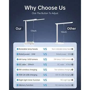 LED Desk Lamp with Wireless Charger - 24W Desk Lamp with USB Charging Port, LED Desk Light with Ambient Light, Study Lamp for Desk, Touch Control Office Light, Desk Lamp for College Dorm Room, White