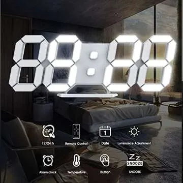 Led Digital Alarm, 3D Wall Clock Desk Auto Dimming 12/24 Hour Date Temperature Home Decor Remote Control Silent Snooze USB Nightlight Bedroom Living Room Kitchen Office 9.7inch Cool White