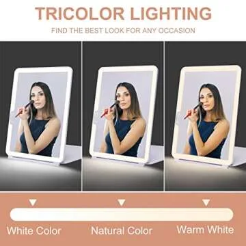 Experience customizable lighting like never before with the touch switch feature. This mirror comes with three color light settings, ensuring that your makeup is flawless in any lighting condition. Transition seamlessly from warm to cool light; you can achieve just the right brightness for all occasions.