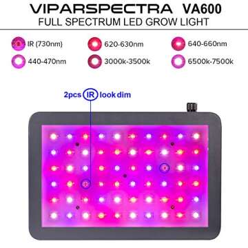 LED Grow Light, VIPARSPECTRA Newest Dimmable 600W LED Grow Light, with Daisy Chain, Dual Chips Full Spectrum LED Grow Lamp for Hydroponic Indoor Plants Veg and Flower Actual Power 132 Watt