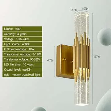 Show moreTransform your space with the luxurious LED Modern Crystal Wall Light Fixtures. This exquisite product beautifully combines functionality with elegance, making it an essential addition to any modern home. Featuring top-tier K9 crystal that captures and refracts light, this wall sconce creates stunning light effects reminiscent of art installations. Plus, designed with energy-efficient LED chips, this wall light not only beautifies your space but also helps to reduce energy consumption by up to 20%. Its durable construction promises longevity, with a specially crafted heat-dissipating aluminum that ensures the LED's lifespan is greatly extended.