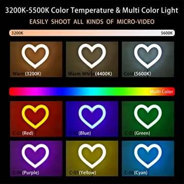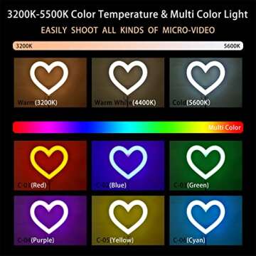 This ring light is equipped with two color temperatures and six RGB lighting modes including warm white, red, green, blue, purple, yellow, and cyan. Each mode is adjustable from 1% to 100% brightness, catering to all your lighting needs, whether for makeup, online content, or artistic photography. With 198 LED lamp beads, you’ll enjoy a long-lasting light source that requires no bulb replacements, enhancing your visual experience while being easy on the eyes.