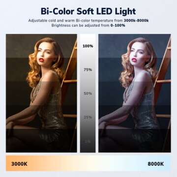 Show moreRevolutionize your photography and videography with the IVISII 3000K~8000K Bi-Color Studio Lights. This comprehensive LED video light kit includes two high-performance panel lights that bring versatility and dimension to your projects. Each panel boasts an impressive 264 LEDs that deliver a remarkable brightness of 3600 Lumens, illuminating your subjects with stunning clarity. Whether you're shooting for YouTube, TikTok, gaming, or live streaming, the adjustable color temperature range of 3000K to 8000K allows for seamless transitions between warm to cool tones, adapting easily to any lighting scenario.