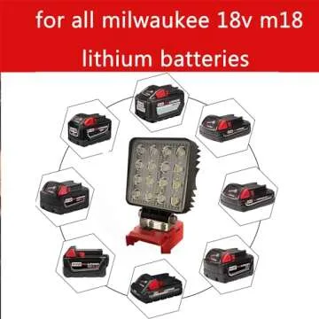 LED Work Light for Milwaukee m18 18v Series Battery 3W LED x 16=48W 4800LM Cordless Flashlight Battery Light with Low Voltage Protection for Camping Workshop Outdoor Emergencies