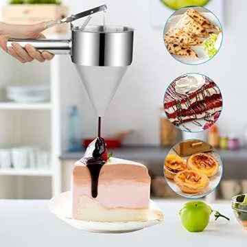 Show moreIntroducing the LEECHU Pancake Batter Dispenser – the ultimate tool for elevating your breakfast game! Crafted from high-quality stainless steel, this durable and efficient batter dispenser boasts a generous capacity of 1200ml, making it perfect for large families or gatherings. The innovative design features a wide opening and a large dispensing hole, allowing for seamless pouring of pancake batter, funnel cake mixtures, and more. Whether you’re flipping pancakes on the griddle or crafting delightful funnel cakes at the fair, this dispenser ensures a mess-free and enjoyable cooking experience.