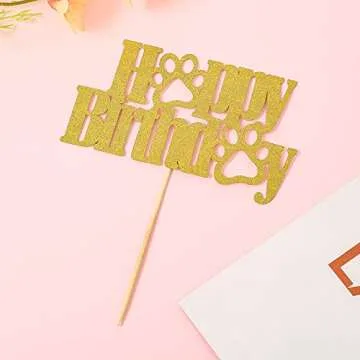 LeeLeeAn Gold Glitter Happy Birthday Dog Paw Cake Topper for Pet Parties