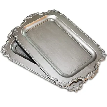 Show moreIntroducing the exquisite Leemxiiny 2Pcs Vintage Silver Decorative Tray, your new favorite home accessory that seamlessly blends elegance with practicality. Crafted with high-quality plastic, this stunning tray is not only lightweight but also highly durable, ensuring it can handle the busy lifestyles of modern living. Perfect for serving beverages, displaying decorative items, or organizing essentials, its versatility makes it a must-have addition to any space, from your coffee table to your bedside.