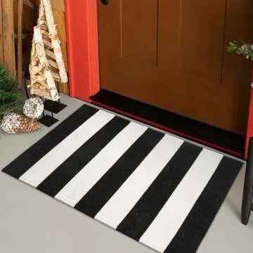 LEEVAN Black and White Rug 2X3, Washable Black Door Mat Cotton Woven Front Porch Rug, Layered Door Mats Outdoor Welcome Indoor Door Mat, Farmhouse Go Away Door Mat Door Mat Indoor Entrance Rug