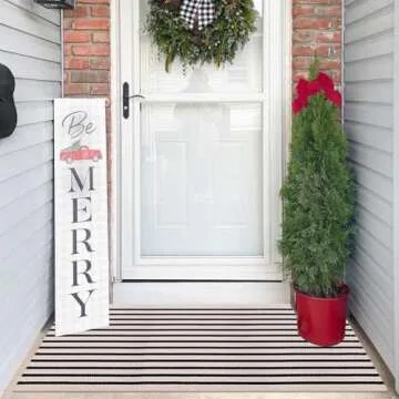 LEEVAN Black and White Striped Outdoor Rug Runner 24"x51" Layering Doormat Farmhouse Front Porch Rug Cotton Woven Washable Throw Carpet for Hallway/Front Steps/Bathroom/Kitchen/Home Entrance